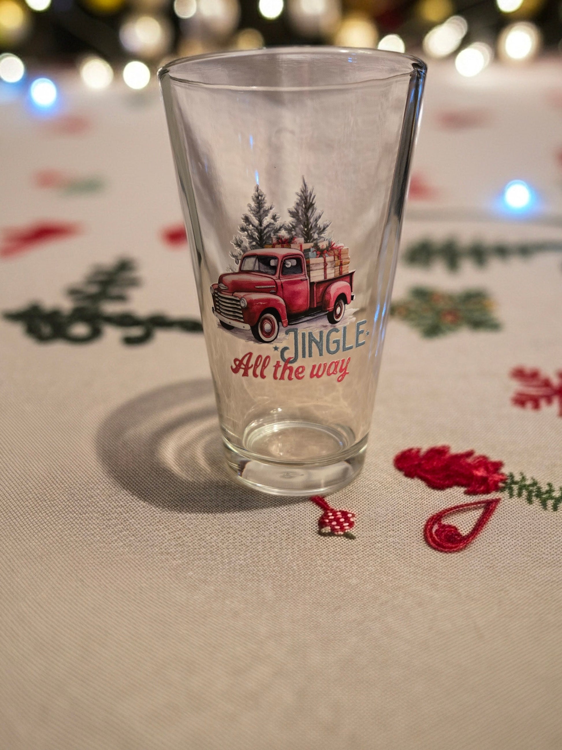 Celebrate the season with this charming 16oz glass featuring a classic red truck design inspired by holiday favorites. Perfect for hot cider, or your favorite festive beverage, this durable glass combines nostalgic appeal with everyday functionality. The vibrant red truck imagery brings warmth and joy to your table, making it an ideal gift for collectors and holiday enthusiasts alike. Dishwasher safe and built to last through countless celebrations.