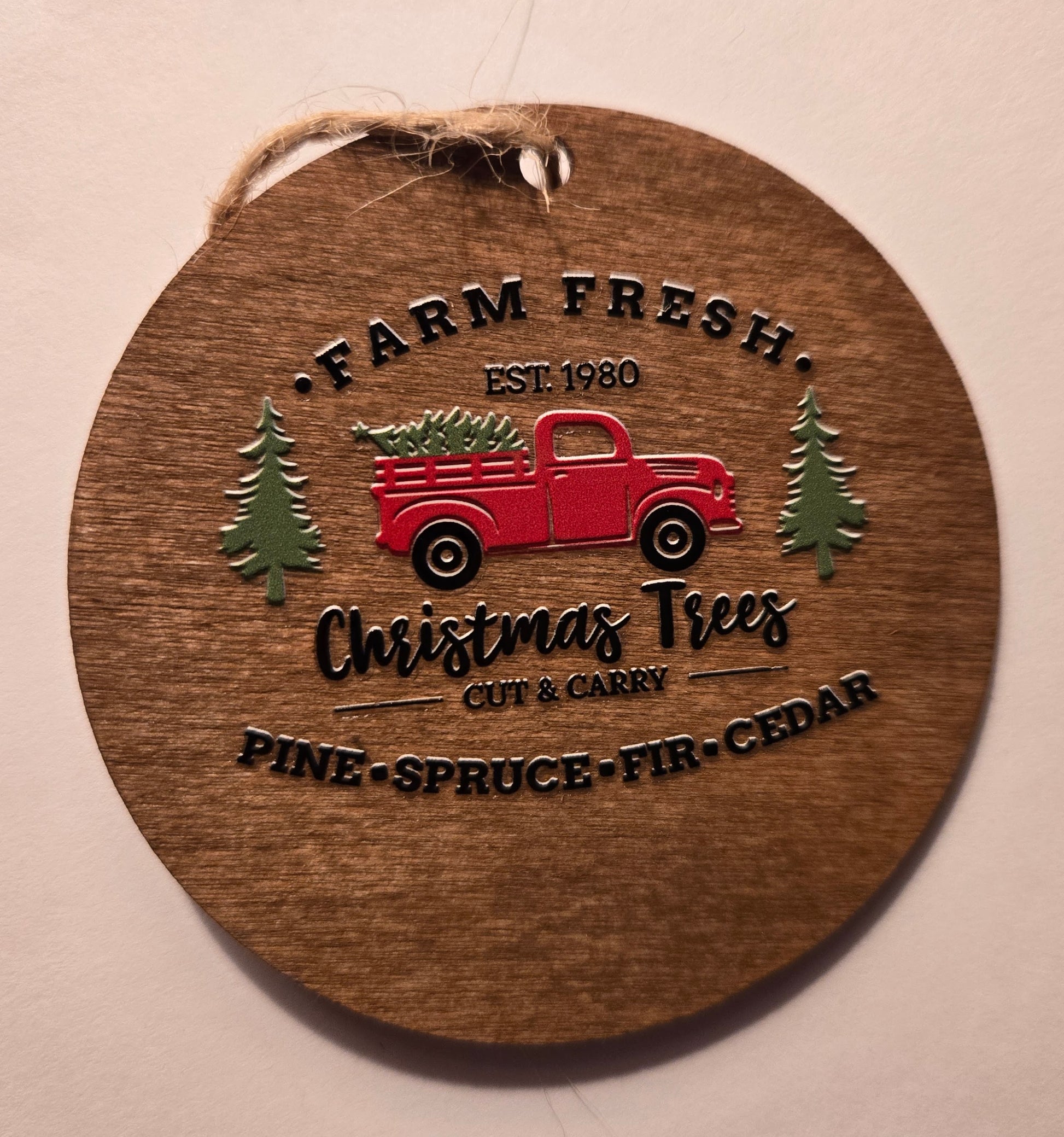 Celebrate timeless Americana with this Red Truck Christmas Ornament. Crafted from painted wood, it captures the nostalgic charm of a classic farm-fresh holiday scene. Equipped with a string for easy hanging, this ornament adds a warm, vintage touch to any Christmas tree or seasonal display. Perfect for those who appreciate traditional country style and enduring craftsmanship.